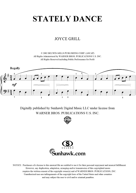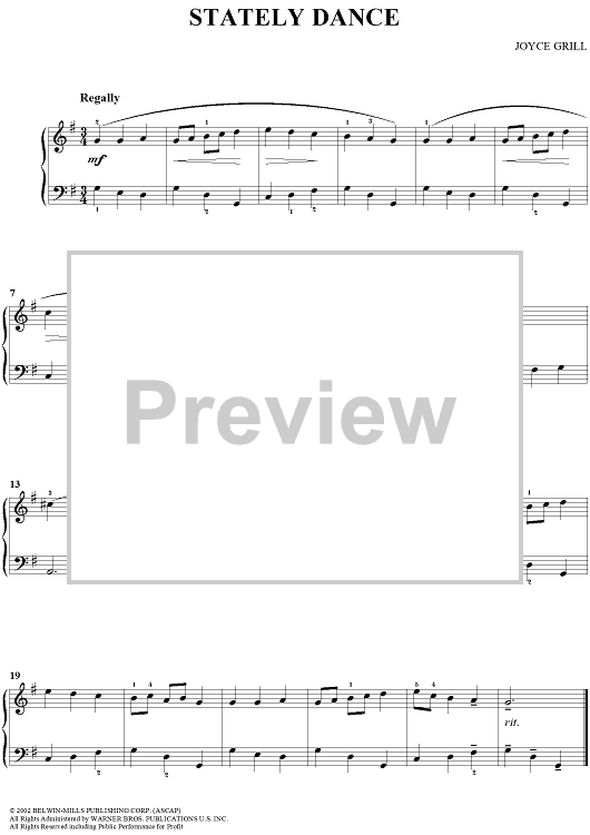 Digital Sheet Music for Stately Dance by Joyce Grill scored for Easy Piano; id:287283