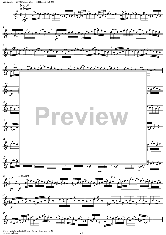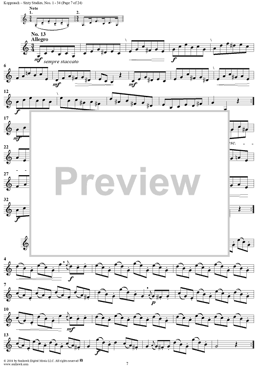 "Study Nos. 1-34" Sheet Music by C. Kopprasch