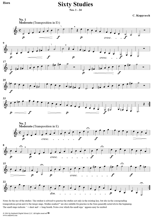Digital Sheet Music for Study Nos. 1-34 by C. Kopprasch scored for Horn; id:303308