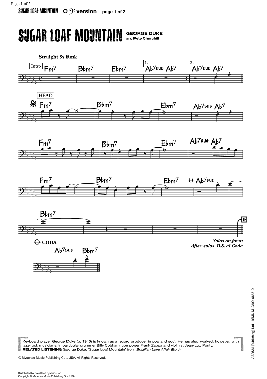 "Sugar Loaf Mountain - C Instruments" Sheet Music by George Duke