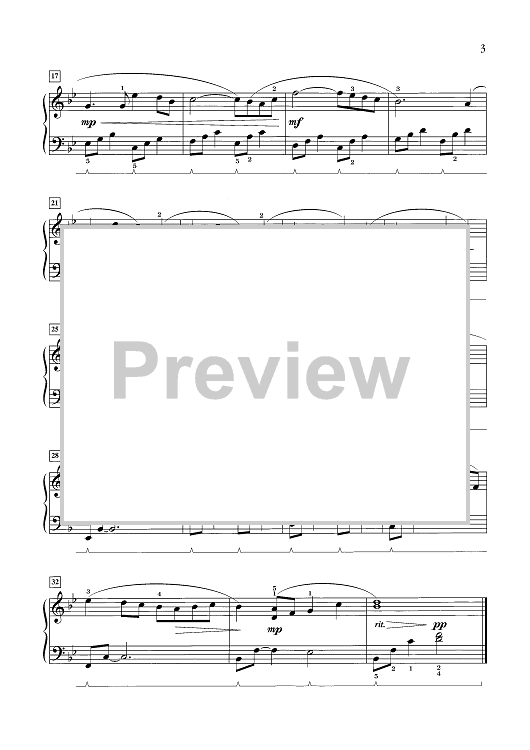 This B-flat major solo is written in a lyrical, romantic style. Hartsell is a master at using patterns and sequences that help students learn the piece quickly. The left hand provides an excellent study in intervals and broken chords. Both hands must move freely over the keyboard, and a legato pedal is a must for creating a smooth and lyrical sound. Teenagers and adults alike will be attracted to the sound and style of this piece.