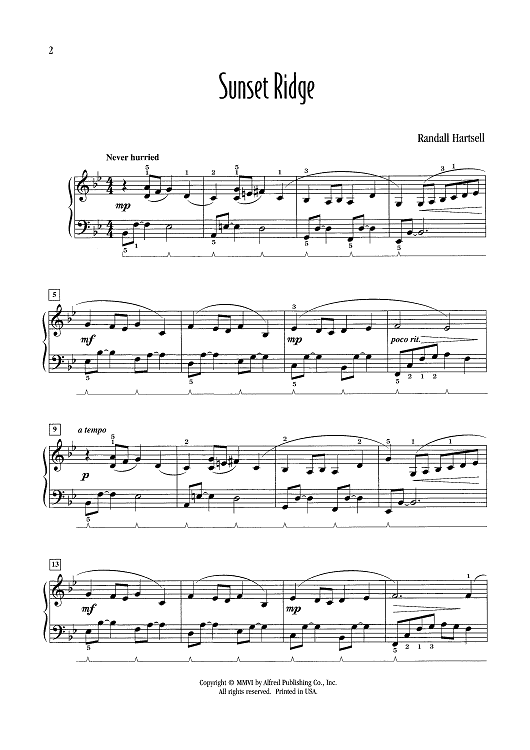 "Sunset Ridge" Sheet Music by Randall Hartsell