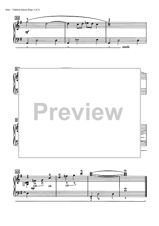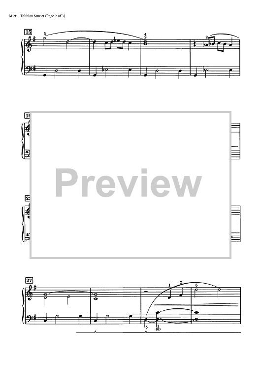 Digital Sheet Music for Tahitian Sunset by Martha Mier scored for Piano; id:462662