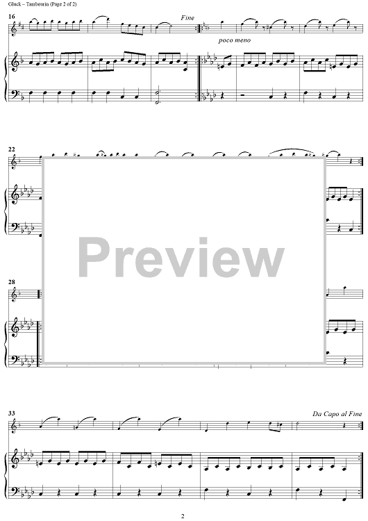 "Tambourin (from "Iphigenia in Aulis")" Sheet Music by Christoph Willibald Glück