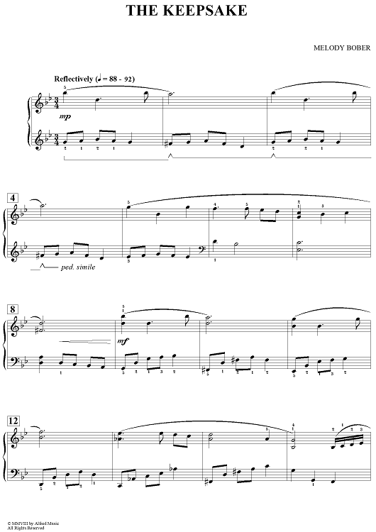Digital Sheet Music for The Keepsake by Melody Bober scored for Piano; id:456505