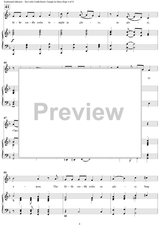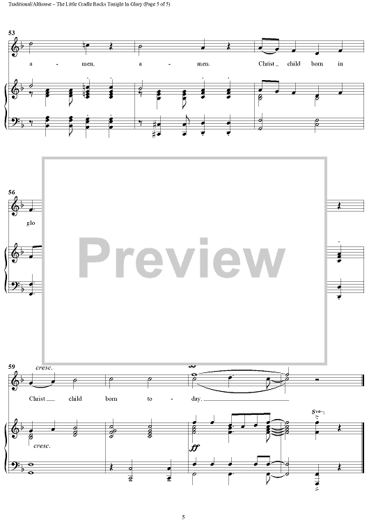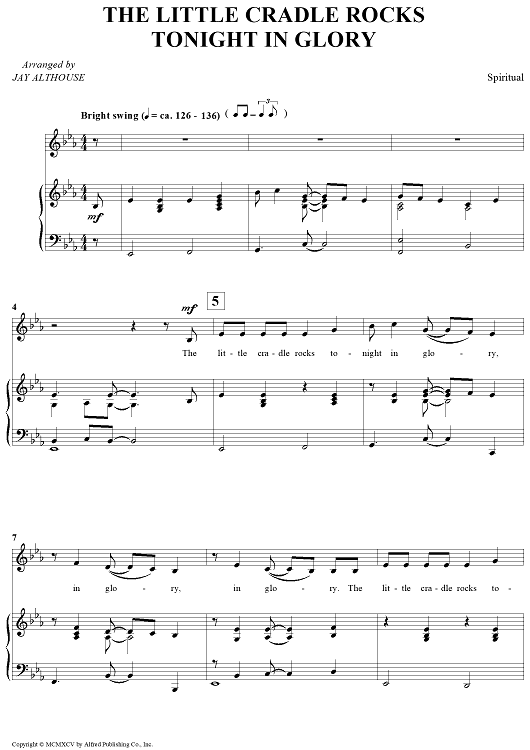 Digital Sheet Music for The Little Cradle Rocks Tonight In Glory by Spiritual, Jay Althouse scored for Piano/Vocal; id:441288