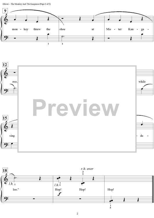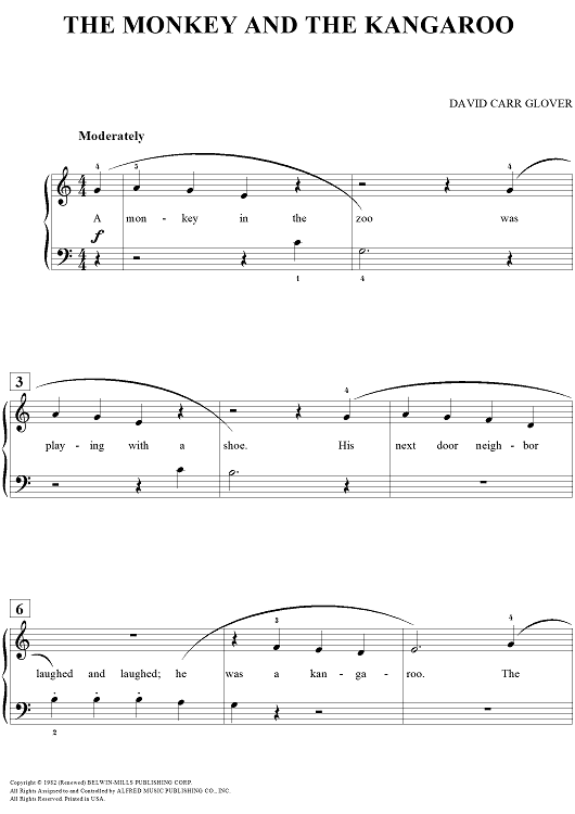Digital Sheet Music for The Monkey and the Kangaroo by David Carr Glover scored for Easy Piano/Vocal; id:449668