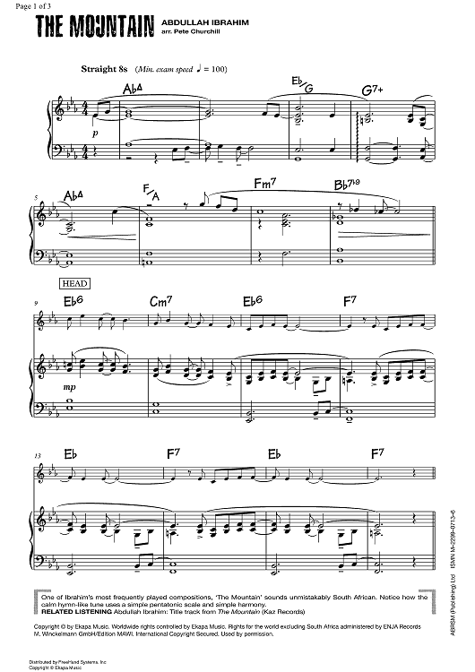 "The Mountain (Piano accompaniment)" Sheet Music by Abdullah Ibrahim