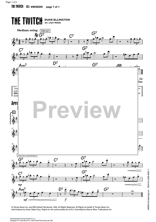 Digital Sheet Music for The Twitch by , Duke Ellington, Liam Noble scored for E-flat Lead Sheet; id:355582