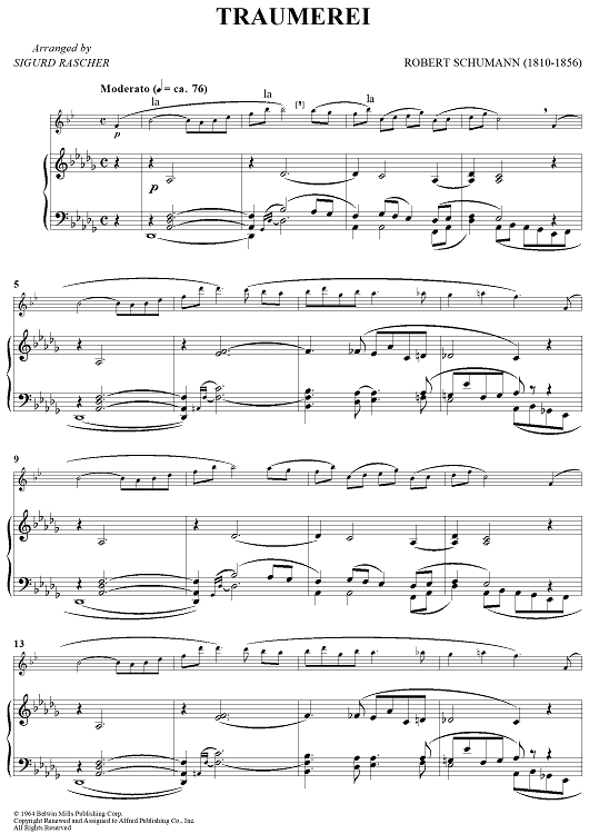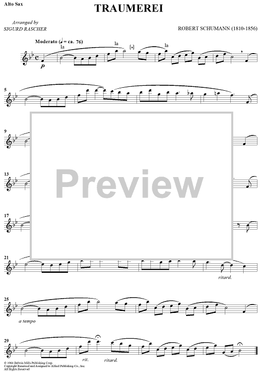Digital Sheet Music for Traumerei by Robert Schumann, Sigurd Rascher scored for Eb Alto Sax/Piano; id:437965