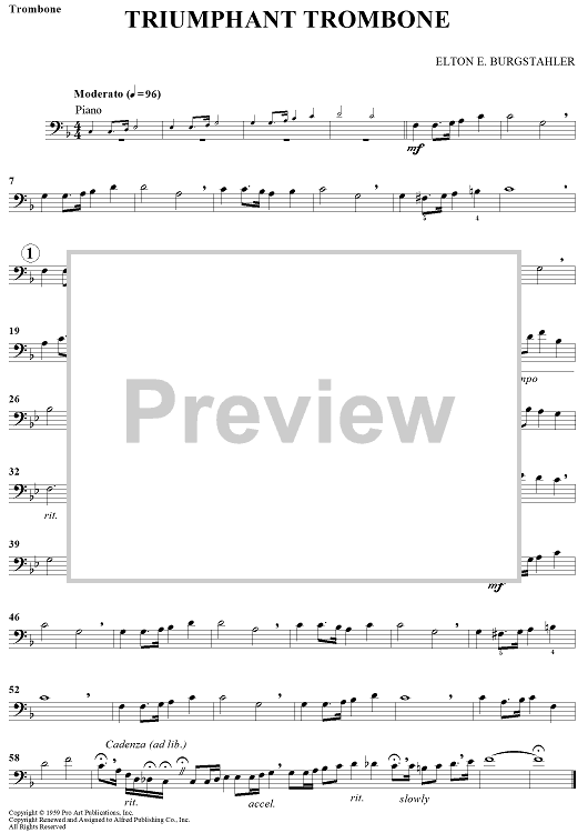 Digital Sheet Music for Triumphant Trombone by Elton E. Burgstahler scored for Trombone/Piano; id:437434