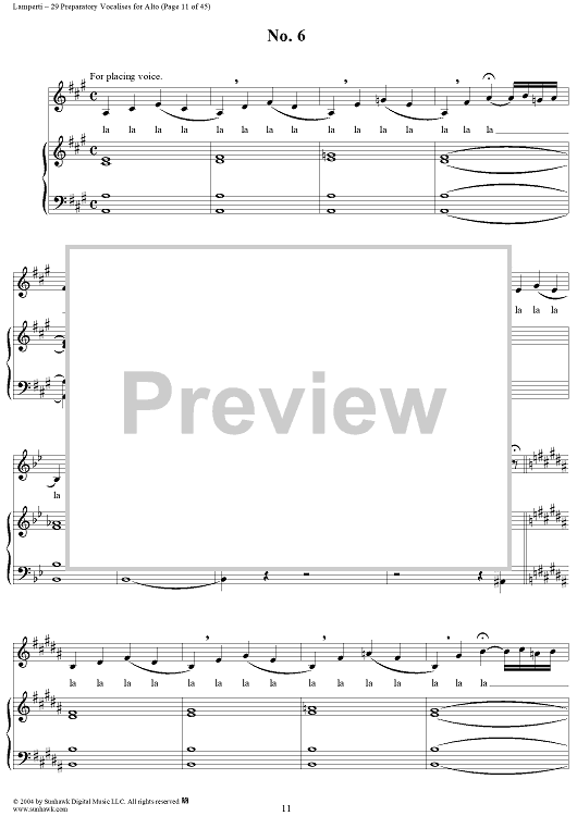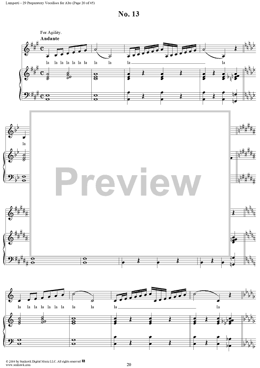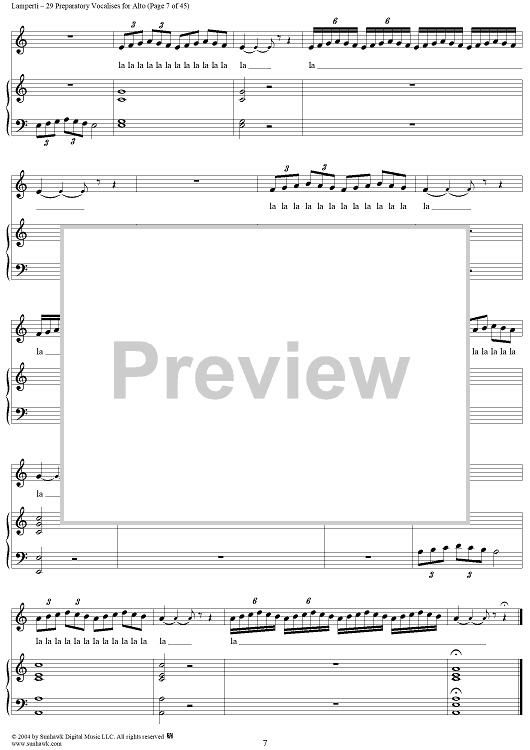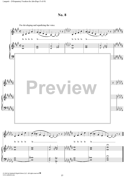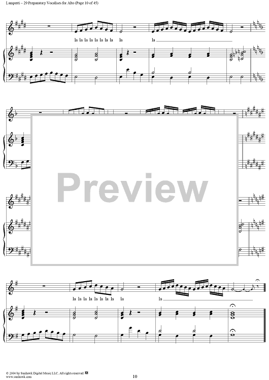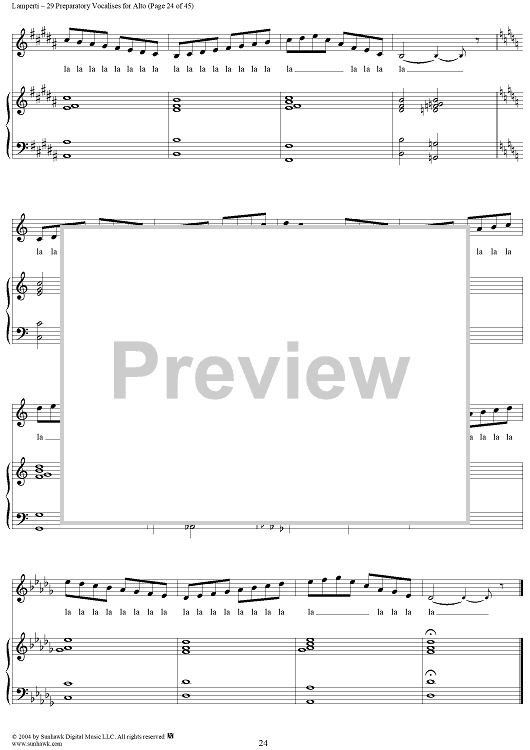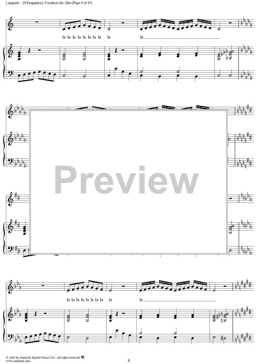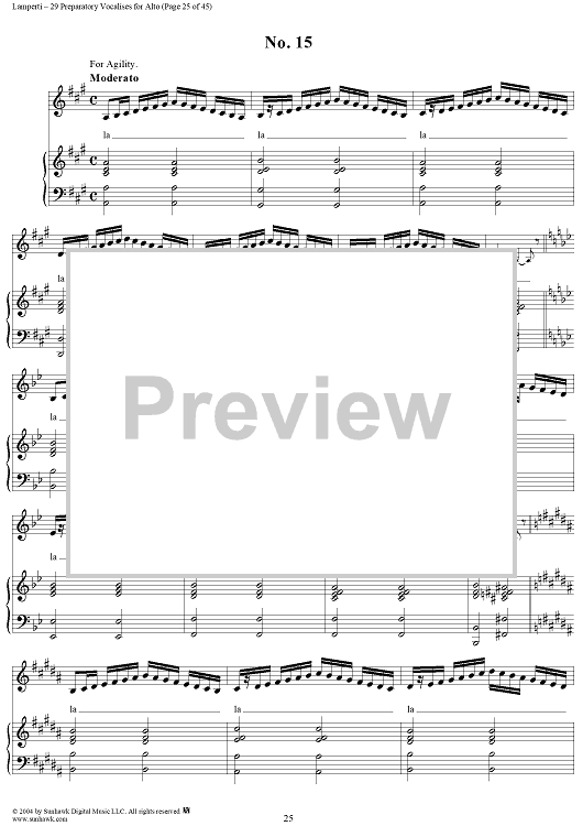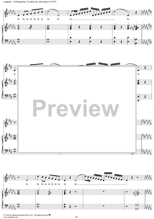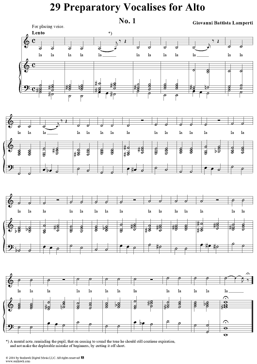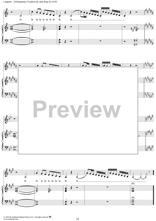 Digital Sheet Music for Twenty-Nine Preparatory Vocalises for Alto by Giovanni Battista Lamperti scored for Voice/Piano; id:312208