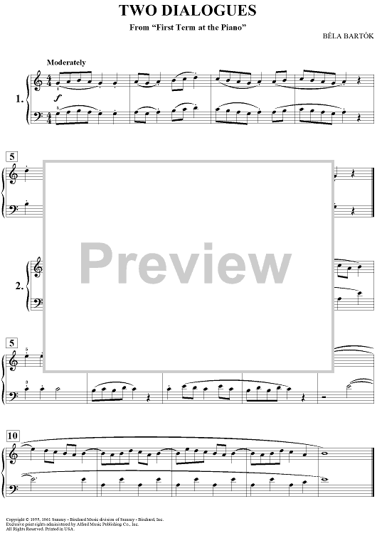 "Two Dialogues - from "First Term at the Piano"" Sheet Music by Bela Bartok