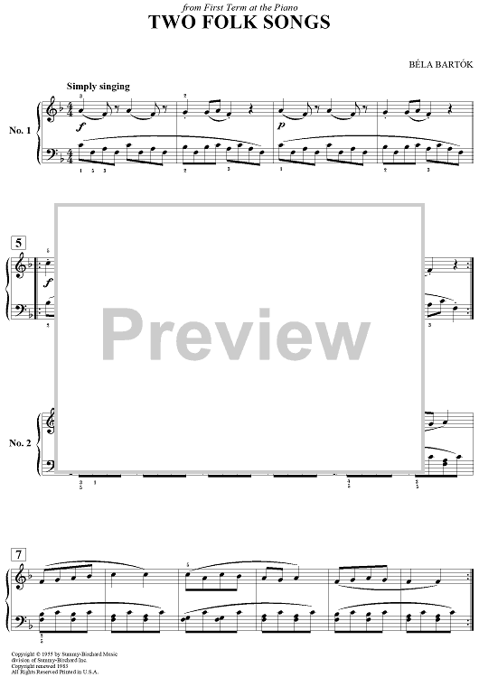 "Two Folk Songs - from First Term at the Piano" Sheet Music by Bela Bartok