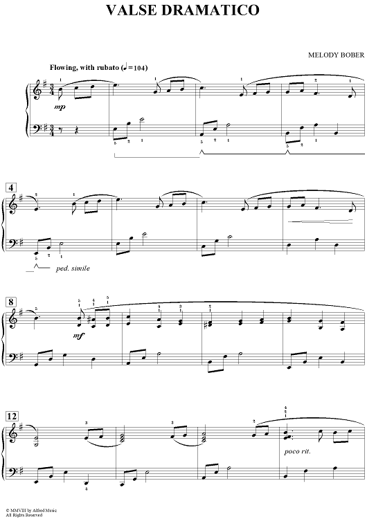 Digital Sheet Music for Valse Dramatico by Melody Bober scored for Piano; id:456504