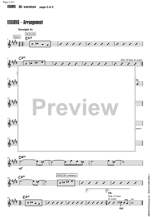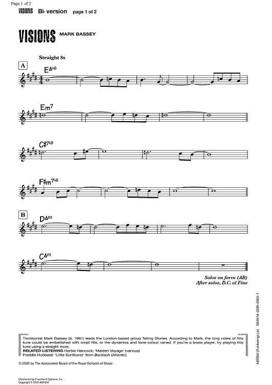 Digital Sheet Music for Visions by , Mark Bassey scored for B-flat Lead Sheet; id:355640
