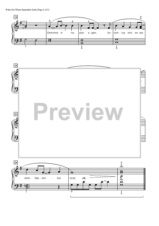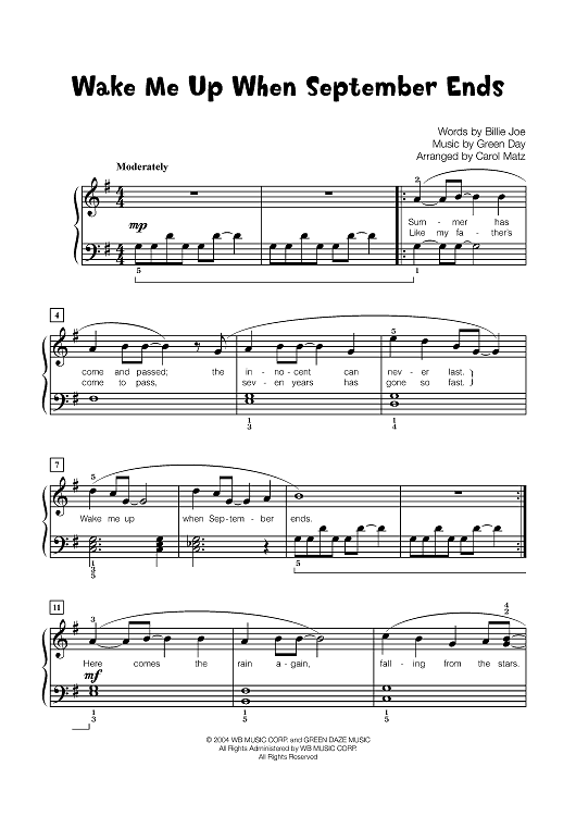 Digital Sheet Music for Wake Me Up When September Ends by Billy Joel, Green Day, Carol Matz scored for Piano; id:451531