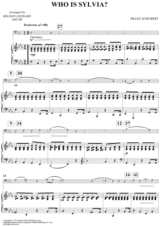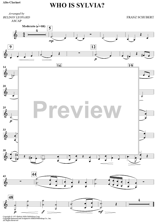 Digital Sheet Music for Who Is Sylvia? by Franz Schubert, Beldon Leonard scored for Eb Alto Clarinet/Piano; id:437921
