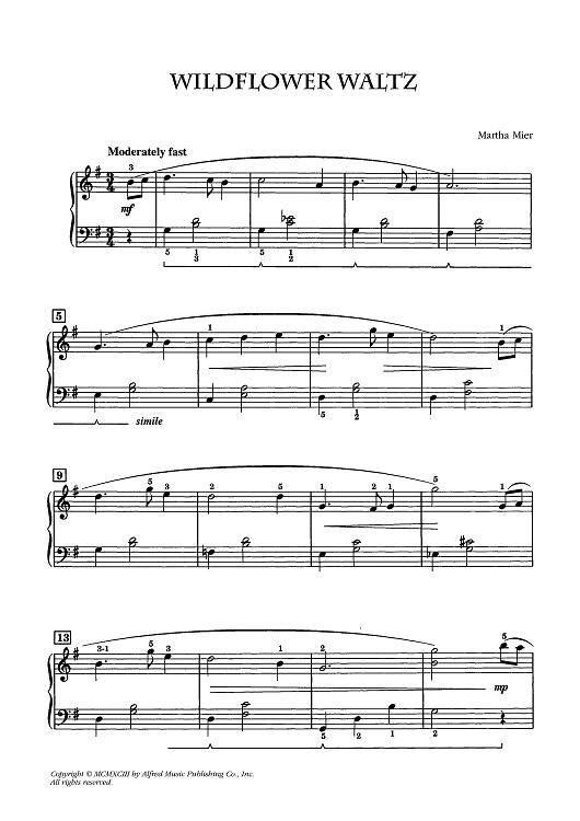 Digital Sheet Music for Wildflower Waltz by Martha Mier scored for Piano; id:462663