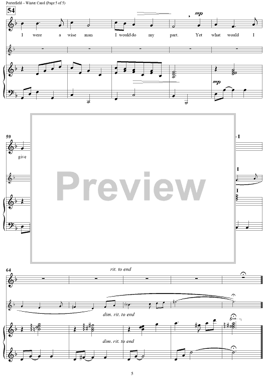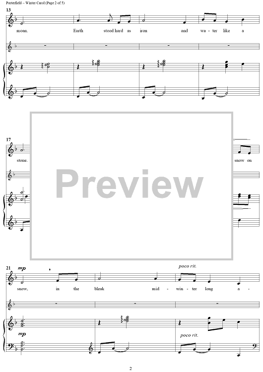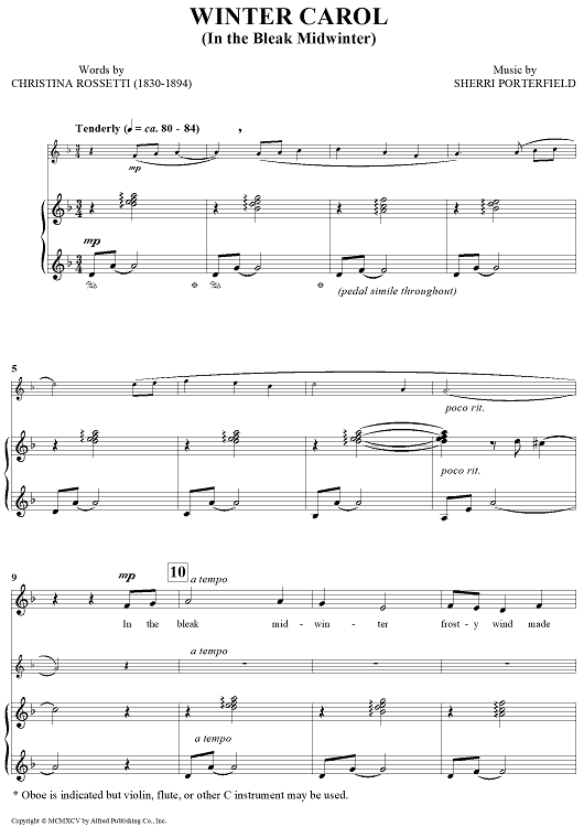 Digital Sheet Music for Winter Carol by Christina Rossetti, Sherri Porterfield scored for Piano/Vocal; id:441289