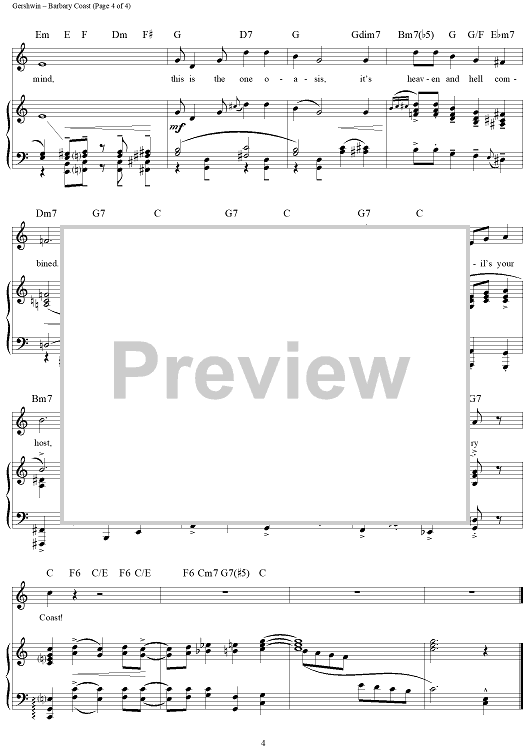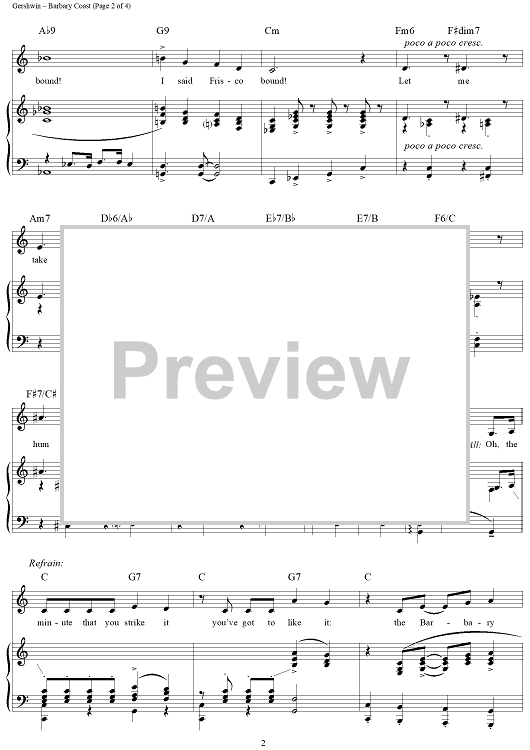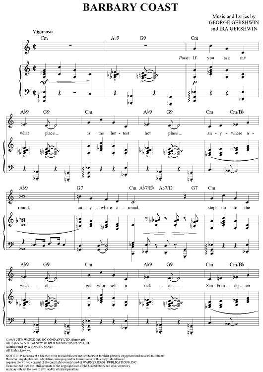 Digital Sheet Music for Barbary Coast by George Gershwin, Ira Gershwin scored for Piano/Vocal/Chords; id:313376