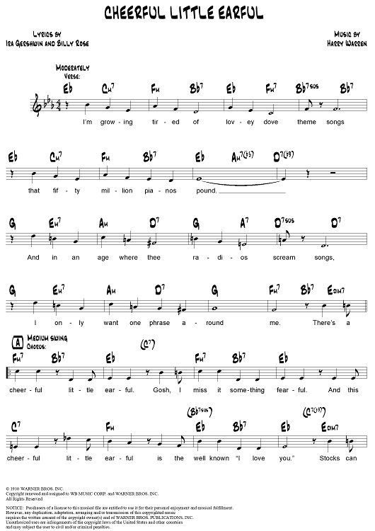 Digital Sheet Music for Cheerful Little Earful by Ira Gershwin, Harry Warren, Billy Rose scored for Lead Sheet; id:312136