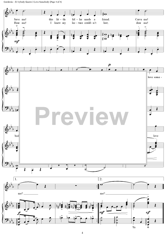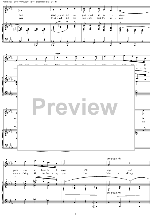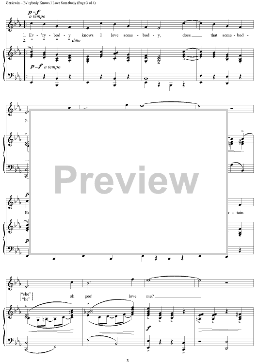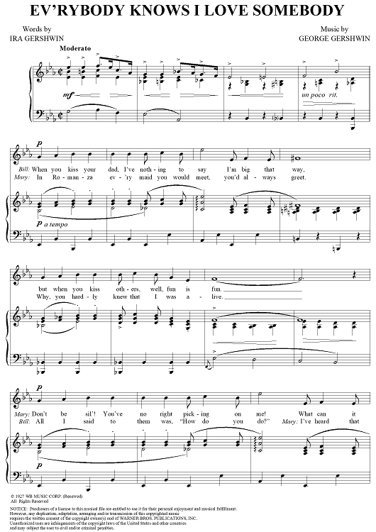Digital Sheet Music for Ev'rybody Knows I Love Somebody by George Gershwin, Ira Gershwin scored for Piano/Vocal/Chords; id:312622