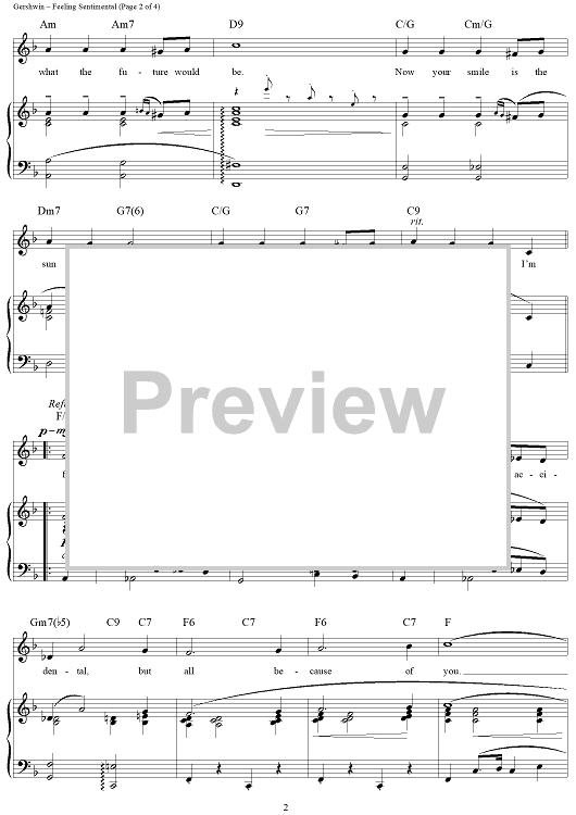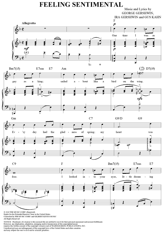 Digital Sheet Music for Feeling Sentimental by George Gershwin, Ira Gershwin, Gus Kahn scored for Piano/Vocal/Chords; id:313386