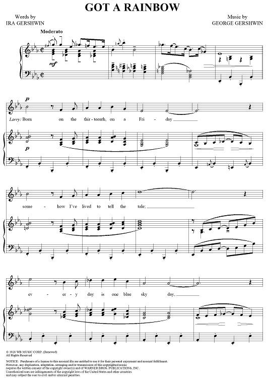 Digital Sheet Music for Got a Rainbow by George Gershwin, Ira Gershwin scored for Piano/Vocal/Chords; id:312624