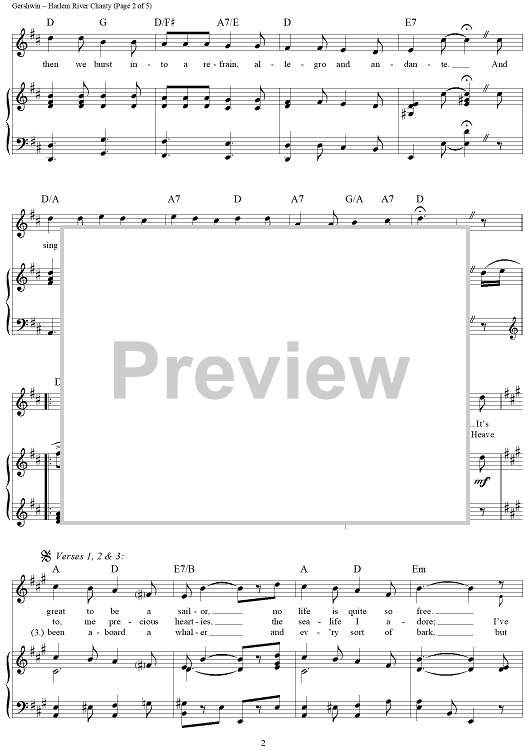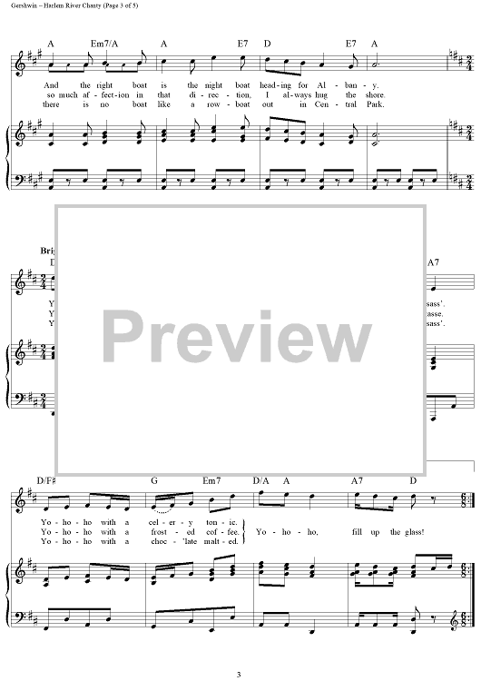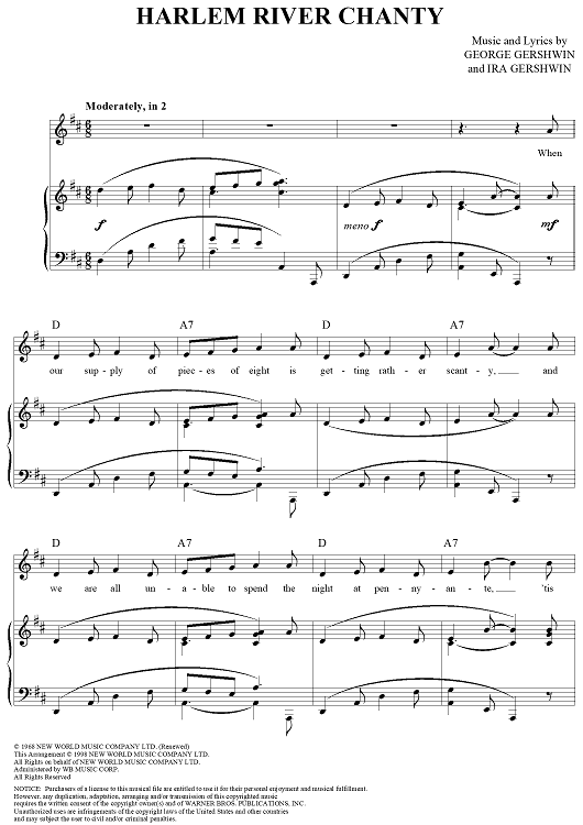 Digital Sheet Music for Harlem River Chanty by George Gershwin, Ira Gershwin scored for Piano/Vocal/Chords; id:313303