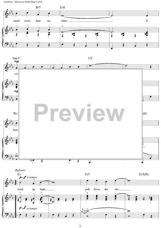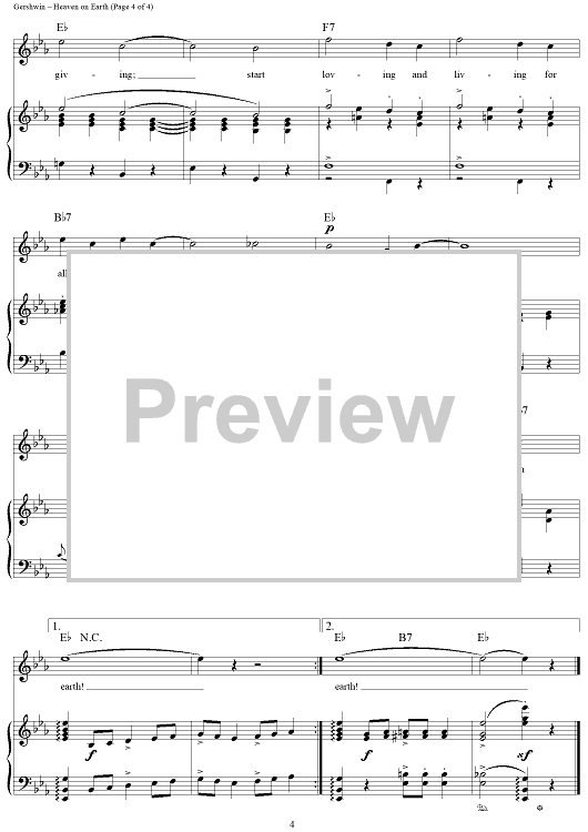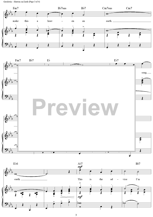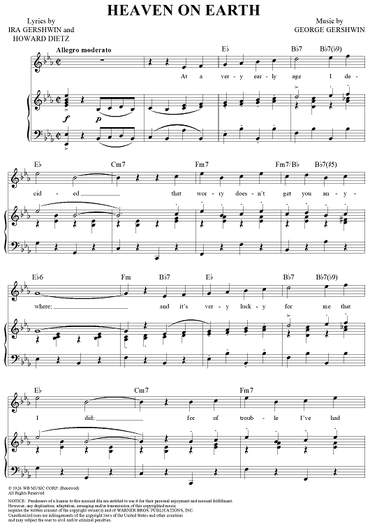 Digital Sheet Music for Heaven on Earth by George Gershwin, Ira Gershwin, Howard Dietz scored for Piano/Vocal/Chords; id:313306
