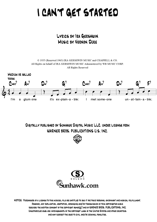 Digital Sheet Music for I Can't Get Started by Frank Sinatra, Ira Gershwin, Vernon Duke scored for Lead Sheet; id:307549