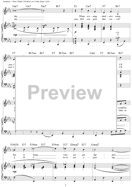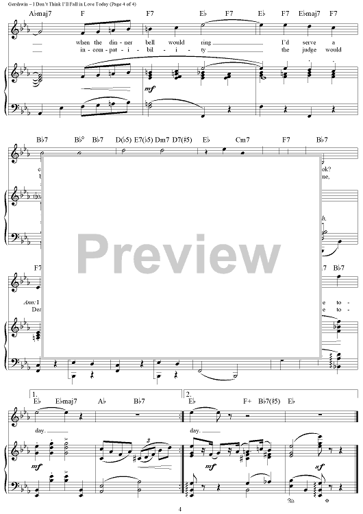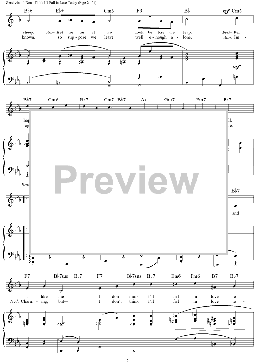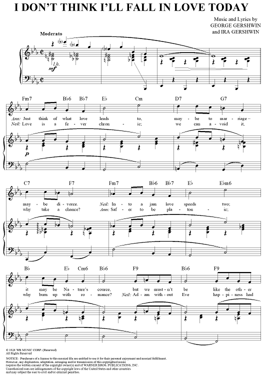 Digital Sheet Music for I Don't Think I'll Fall in Love Today by George Gershwin, Ira Gershwin scored for Piano/Vocal/Chords; id:313284