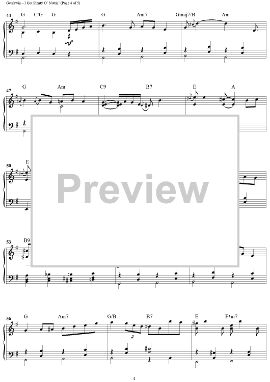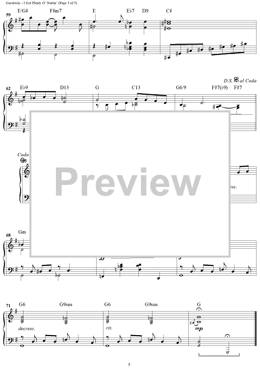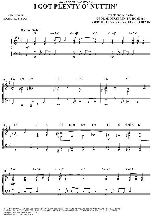 Digital Sheet Music for I Got Plenty O' Nuttin' by George Gershwin, Ira Gershwin, Dubose & Dorothy Heyward, Brent Edstrom scored for Piano Solo; id:461805