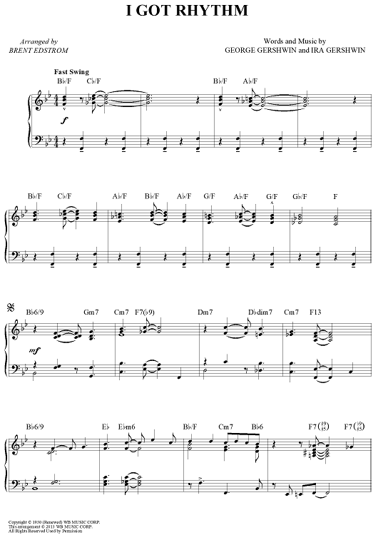 Digital Sheet Music for I Got Rhythm by George Gershwin, Ira Gershwin, Brent Edstrom scored for Piano Solo; id:461806