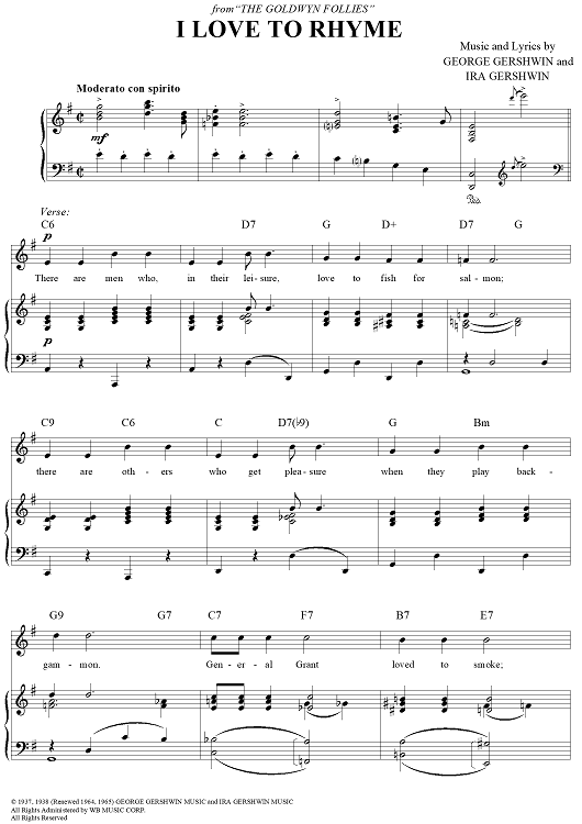 Digital Sheet Music for I Love to Rhyme by George Gershwin, Ira Gershwin scored for Piano/Vocal/Chords; id:116304