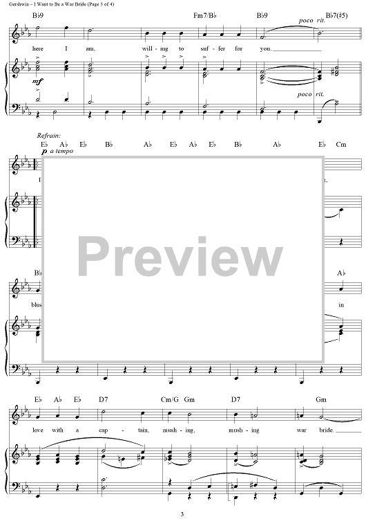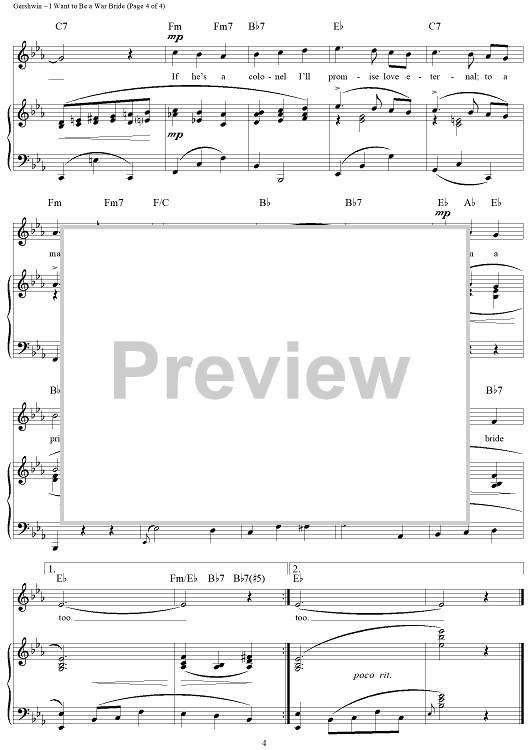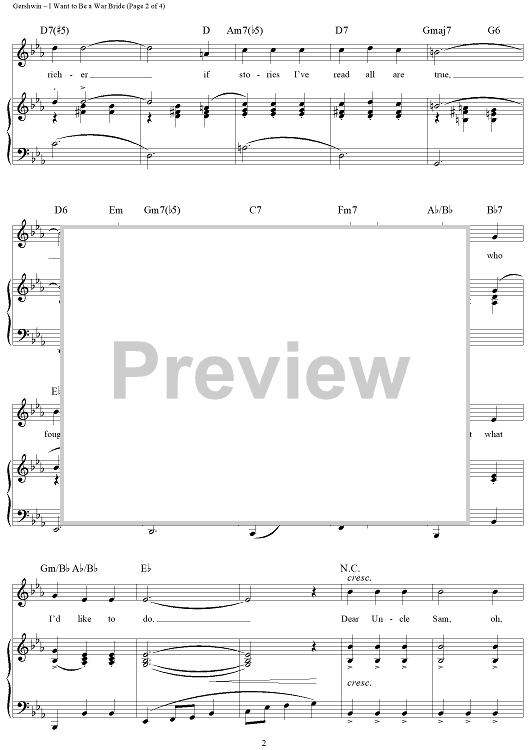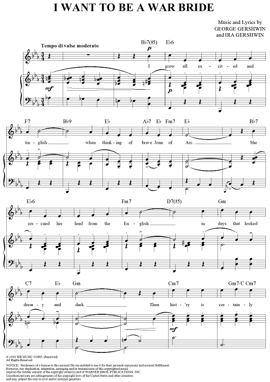 Digital Sheet Music for I Want to Be a War Bride by George Gershwin, Ira Gershwin scored for Piano/Vocal/Chords; id:313292