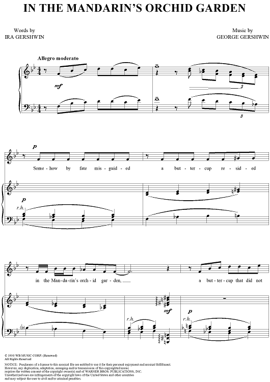 Digital Sheet Music for In the Mandarin's Orchid Garden by George Gershwin, Ira Gershwin scored for Piano/Vocal/Chords; id:312628