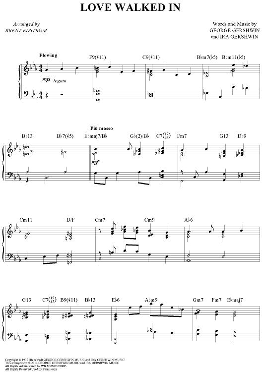 Digital Sheet Music for Love Walked In by George Gershwin, Ira Gershwin, Brent Edstrom scored for Piano Solo; id:461813