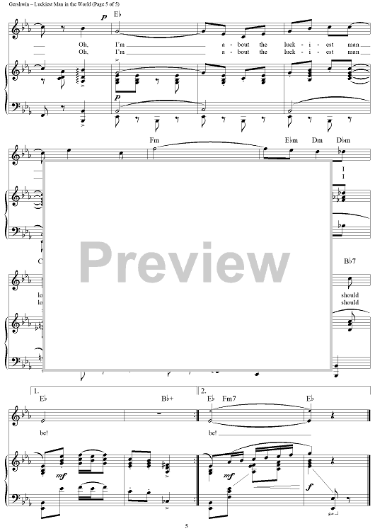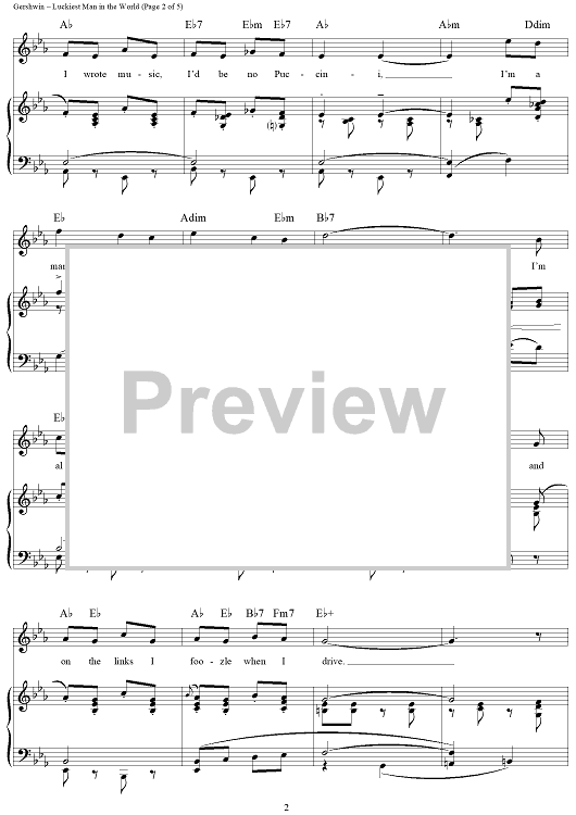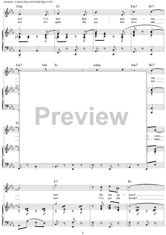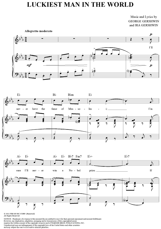 Digital Sheet Music for Luckiest Man in the World by George Gershwin, Ira Gershwin scored for Piano/Vocal/Chords; id:313388