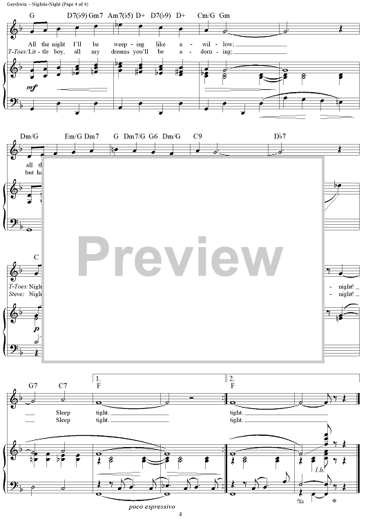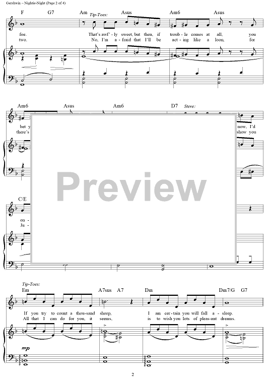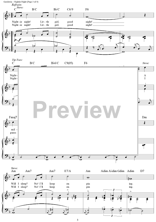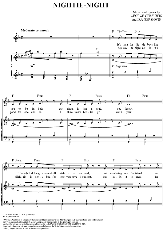 Digital Sheet Music for Nightie-Night by George Gershwin, Ira Gershwin scored for Piano/Vocal/Chords; id:313302
