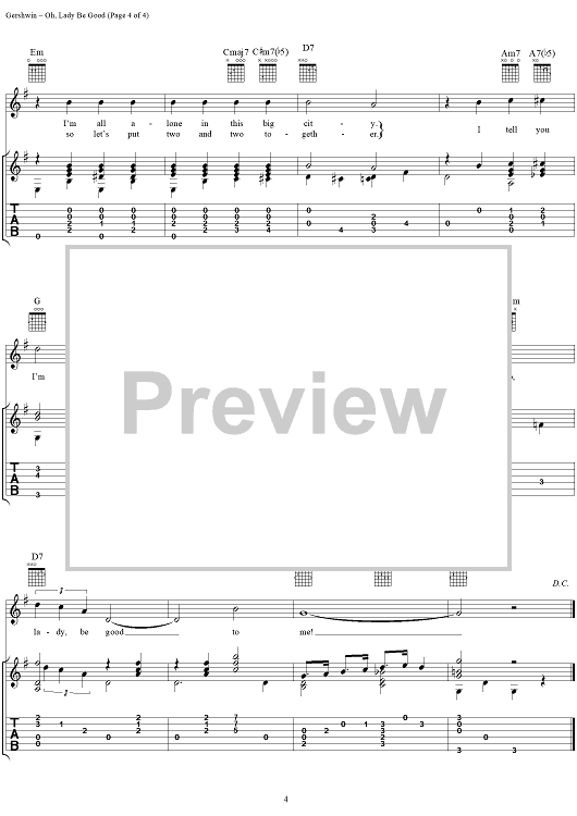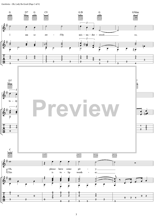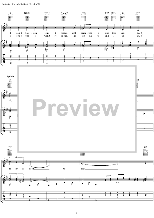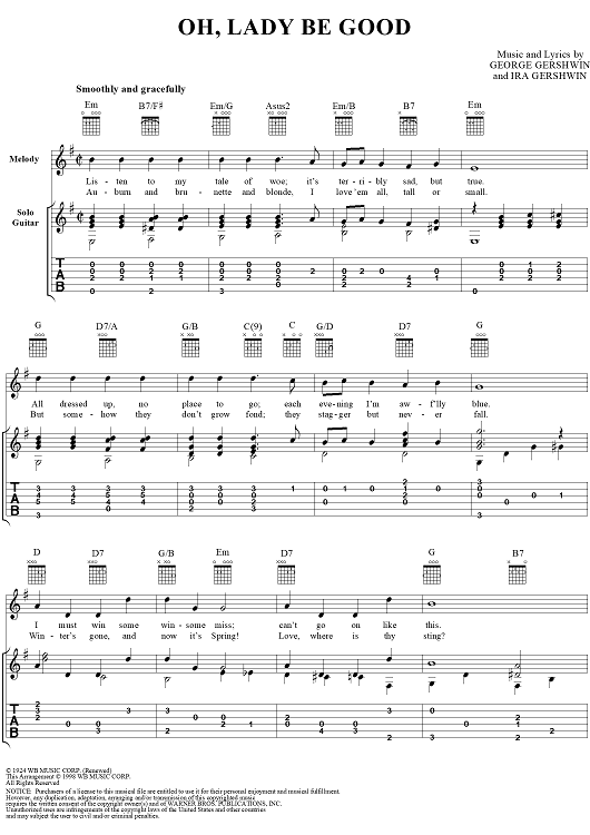 Digital Sheet Music for Oh, Lady Be Good! by George Gershwin, Ira Gershwin, Jerry Silverman scored for Guitar Tab/Vocal; id:119292