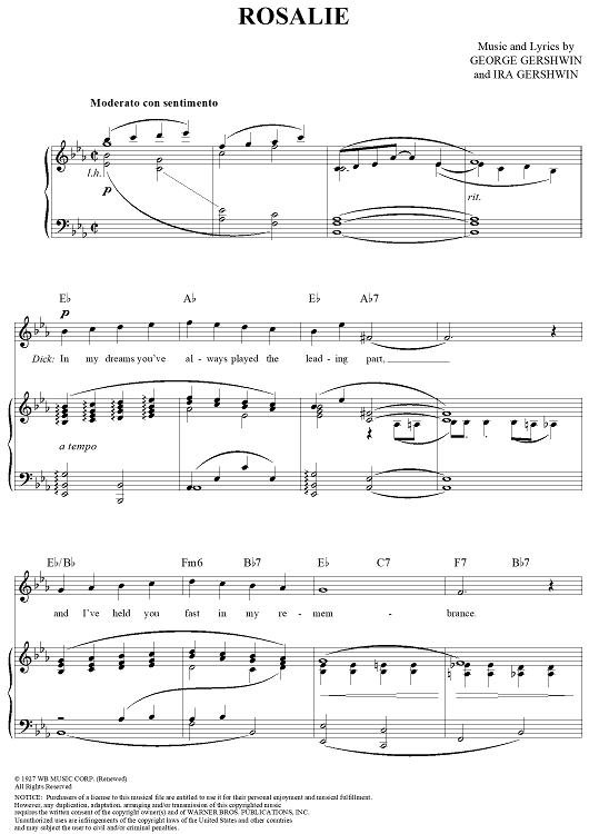 Digital Sheet Music for Rosalie by George Gershwin, Ira Gershwin scored for Piano/Vocal/Chords; id:313287