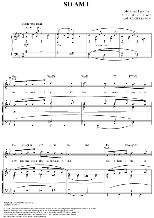 Digital Sheet Music for So Am I by George Gershwin, Ira Gershwin scored for Piano/Vocal/Chords; id:313305