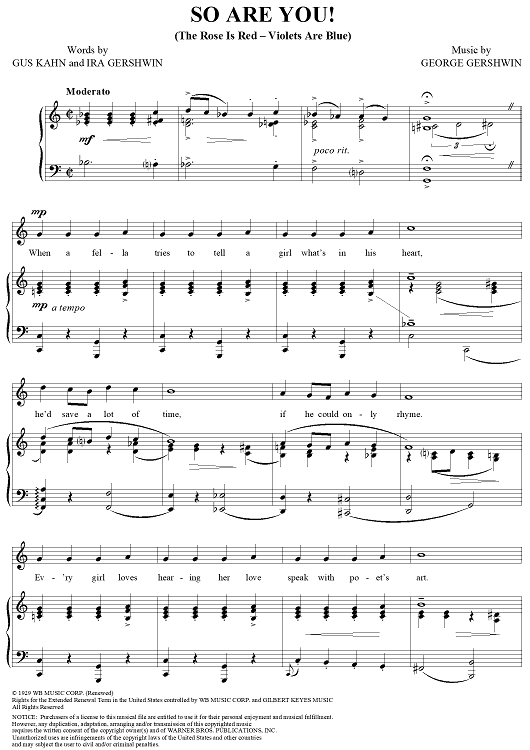 "So Are You! (The Rose Is Red - Violets Are Blue)" Sheet Music by George Gershwin