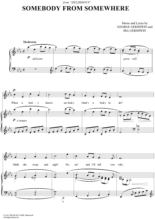 Digital Sheet Music for Somebody from Somewhere by George Gershwin, Ira Gershwin, Janet Gaynor scored for Piano/Vocal/Chords; id:116300