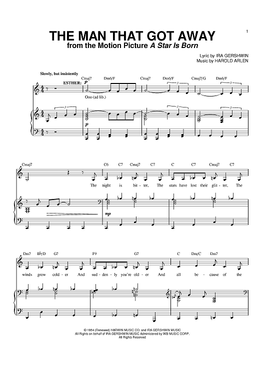 Digital Sheet Music for The Man That Got Away by Harold Arlen, Ira Gershwin scored for Piano/Vocal/Chords; id:387639
