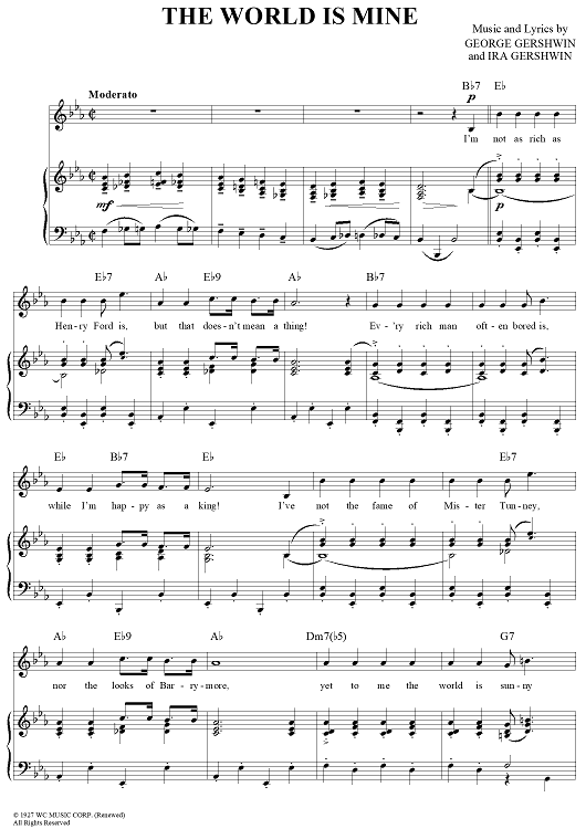 Digital Sheet Music for The World Is Mine by George Gershwin, Ira Gershwin scored for Piano/Vocal/Chords; id:313288