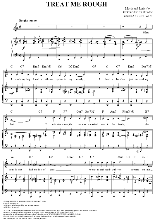 Digital Sheet Music for Treat Me Rough by George Gershwin, Ira Gershwin scored for Piano/Vocal/Chords; id:313394