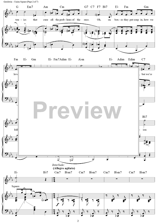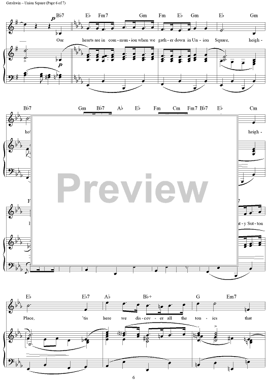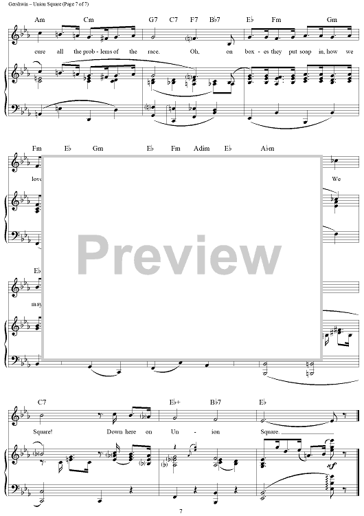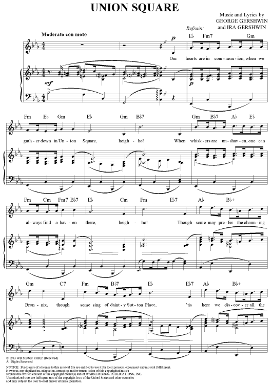 Digital Sheet Music for Union Square by George Gershwin, Ira Gershwin scored for Piano/Vocal/Chords; id:313382
